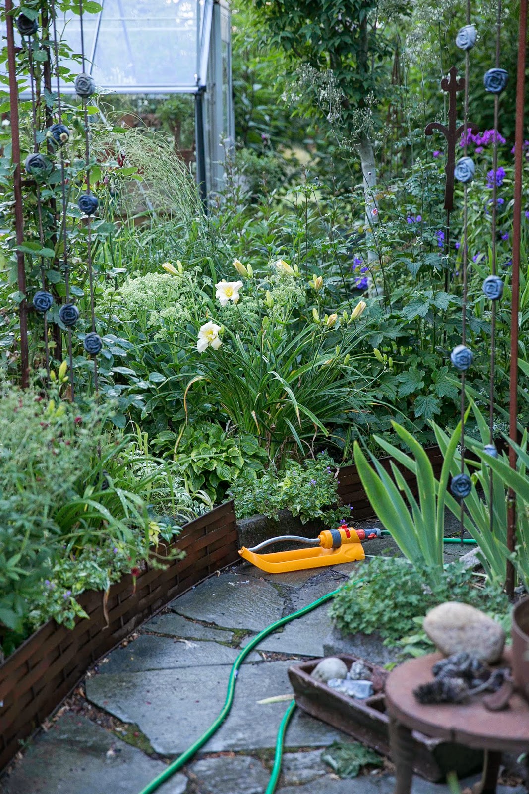 Är just nu väldigt glad över att vi har kommunalt vatten för floxen hänger efter bara ett par dagar utan bevattning och det gör grenastern och rosenflockeln också. Ja egentligen slokar det mesta i trädgården.